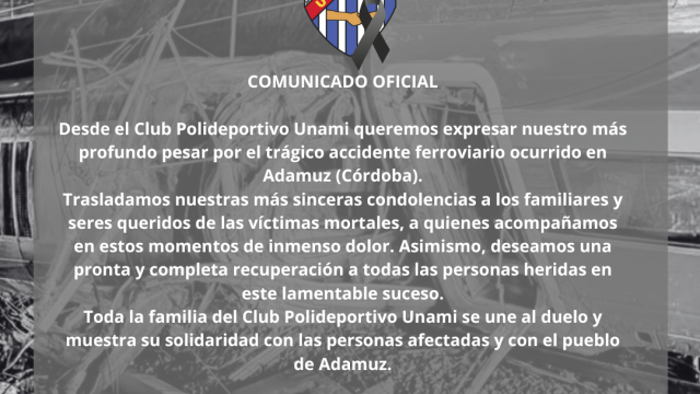 Desde el Club Polideportivo Unami queremos expresar nuestro más profundo pesar por el trágico accidente ferroviario ocurrido en Adamuz (Córdoba).